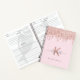 Un fondo rosa rubor. Rosa de purpurina de imitación de oro gotea, pintura goteando se ve como decoración. Personalice y agregue un nombre, una letra monográfica y un texto al frente. El nombre está escrito en un guión moderno con letras de color gris y con toques. Para tus recetas favoritas. Para que los cambios sólo eliminen el nombre del ejemplo, deje los espacios o la emoji delante y después del nombre.