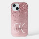 Personaliza fácilmente este diseño de estuche de teléfono de moda de moda con un purpurina brillante color rosa rosa bonito sobre un fondo metálico rosa roto.