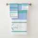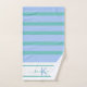 Moderno, rayado de azul claro, verde pastel y blanco. Personalice y agregue su nombre y letra de monograma. El nombre está escrito con una escritura a la moda a mano, con letras a la carta, con toques y letras verdes pastel. La letra monograma en azul claro. Para que los cambios sólo eliminen el nombre del ejemplo, deje los espacios o la emoji delante y después del nombre.
