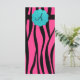 Fondo de patrón de rayas de cebra rosa y negra con círculo de vieiras turquesa falso purpurina y rayas negras y letra monograma a cualquier letra a,b,c,d,e,f,g,h,i,j,k,l,m,n,o,p,q,r,t,u,v,x,y,z Ideal para bodas novios y novios, duchas de compromiso, fiesta de compromiso, aniversario, salva la fecha, fiesta de soltera, cumpleaños y mucho más con una elegante y tradicional carta de fantasía