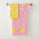 Un bonito conjunto de toallas con fondo rosa y puntos de polka blanco, tres patos amarillos de goma a lo largo del borde inferior, creando un diseño lúdico que añade un toque de color a cualquier cuarto de baño. Haga una declaración con nuestra toalla personalizada añadiendo su monograma. El pato de lavado tiene un pato de goma solitario y la frase, Splish Splash. Es un recordatorio delicioso para disfrutar de los placeres de la vida, haciendo que tu experiencia de baño sea a la vez divertida y refrescante.