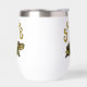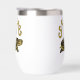 Una colorida tortuga deslizante de las tierras de pepino, de estilo personalizado grueso. El reptil se ilustra desde la vista lateral, mostrando el patrón amarillo y negro. Por encima de la tortuga se levanta un sol amarillo. Entre el sol y el caparazón de tortuga hay un M. El M es corto para monograma y puede ser personalizado para su inicial personal.