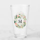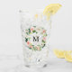 Tumbler de vidrio monograma con una flor acuarela de flores de color rosa y blanco con hojas verdes y acentos fológicos. Personalice agregando su monograma. ¡El tumbler floral ruidoso hace un gran regalo personalizado!