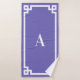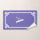 Borde cuadrado de estilo clave griego blanco decorativo y monograma serif moderno en un juego de toallas de baño con acristalamiento. Personalizar este diseño editando el color púrpura bonito del perwinkle o los colores blancos tanto en la imagen gráfica de fondo como de borde geométrico. Cambie el estilo de letra, el tamaño o utilice su color favorito. La decoración de este hotel de diseño combina con el estilo neón de periwinkle. Una encantadora idea de regalo para tu mejor amigo.