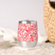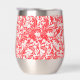 Esta copa de vaso de vino tiene un patrón de rotación de hojas retro en blanco y rojo bonito. El monograma de la triple letra es rojo en un cartel ovalado blanco.
