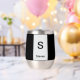 Un minimalista diseño monográfico con una franja gris en el centro con un monograma y su nombre debajo. ¡El regalo o accesorio perfectamente personalizado!