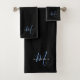 Elegante juego de toallas de baño estilo Monograma con escritura azul negro. Un elegante monograma de escritura azul combinado con una limpia fuente san-serif en blanco, le da un aspecto contemporáneo.
