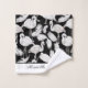 Monogramar esta toalla de baño blanca y negra con tus nombres, iniciales o cualquier texto. Un patrón de cisnes blancos con plumas sobre fondo negro. Muy elegante y chic. Ver nuestros productos de dormitorio/baño a juego en nuestra tienda.