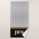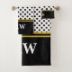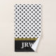 Este conjunto de toallas de baño monogramadas es blanco y negro y tiene un patrón de puntos polka clásico. Personalice el conjunto con el monograma/iniciales del destinatario.