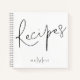 Monograma Elegante Guión Libro de Recetas Blanco Negro. El encabezado principal Recetas se encuentra en un guión elegante y se puede personalizar fácilmente con el nombre del destinatario y el inicial.