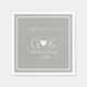 Un diseño elegante y de moda en una servilleta de papel gris, para el fiesta de la recepción de bodas, personalizado con sus iniciales (un bonito monograma con la imagen de un corazón) y texto personalizado (Gracias por participar en nuestro día de boda)...