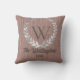 En esta elegante almohada se encuentra la madera rústica mauve con una letra que se puede personalizar en el centro, unida con una elegante corona de laurel de plata para más pop, y más abajo, un espacio donde se puede personalizar con su nombre y fecha. Vibes rústicas de cabaña.