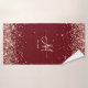Un arte digital de purpurina dorada rosa falsa sobre un fondo gráfico rojo oscuro borgoña con un monograma familiar de caligrafía moderna en una toalla de baño. Puedes cambiar el estilo de fuente, colores o tamaño si lo deseas. Toda la purpurina brillante y resplandeciente es un efecto artístico que se imprime como una foto.