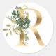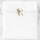 Monograma floral en oro Pegatina redonda clásica