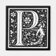 Esta simple letra "P" está enmarcada con un motivo floral blanco y negro muy bonito.