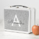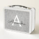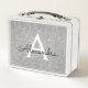 Moderno Purpurina de Faux Plata y elegante caja de almuerzo Sparkle. El Lunch Box se puede personalizar para incluir su nombre inicial y su nombre.
