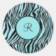 Monogramado Sello para sobres de Pegatina redondo clásico negro y Verde azulado de Cebra Turquesa