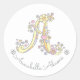 pegatina de nombres de monograma de chicas de bonitos ideal para embellecer libros y para artículos de chicas personalizados. Los pegatinas leen Annabelle Adams o puedes personalizar con tu propio nombre o apellido empezando en A. Letra gráfica decorativa mayúscula A con corazones y flores arte © Diseñado por Sarah Trett www.sarahtrett.com para www.mylittleeden.com
