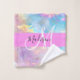 Nombre de monograma iridiscente holográfico del arcoiris grisáceo y tela de lavado inicial. Su nombre personalizado y su monograma están escritos en un guión elegante con letras a mano con un fondo rosado. ¡Un regalo perfecto de cumpleaños o Navidades!