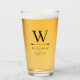 Vidrio de cerveza monogramado para tu mejor hombre con su nombre inicial en un diseño simple y minimalista y su rol en la fiesta de bodas en un guión informal.