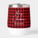 Fácil de personalizar con su nombre. Con las palabras "Feliz Navidad" en tipografía de escritura blanca sobre un fondo rojo y negro de piel de búfalo. Aprovecha el espíritu Navidad al estilo rústico de una casa de campo esta temporada festiva.