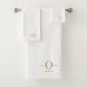 Personalizado elegante monograma dorado inicial, dorado nombre, toalla de baño blanco. Refresca la decoración del baño con un estilo tipográfico minimalista.