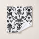 Patrón elegante de damasco negro sobre fondo blanco con monograma.