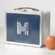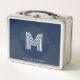 Elegante Navy Blue Geometric Moderno Monograma Metalizado Caja de almuerzo