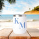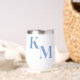 Este vaso de vaso de vino tiene sólo su monograma de dos letras en letras grandes azul de flor de maíz. ¡No hay duda de a quién pertenece este hermoso vaso! Moderno, elegante y de moda.