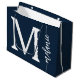 Monograma moderno Navy Guión blanco Gran Bolsa de Regalo. Perfecto para fiestas y celebraciones como boda, ducha de novia, cumpleaños, Navidades y mucho más.