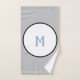 Grandes círculos geométricos con color plateado y azul pizarra monogramados inicialmente dentro del círculo negro. Bonito suave pizarra gris y fondo plateado. Moderna y divertida playa costera casa de veraneo. Diseños originales de TamiraZDesigns.