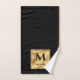El elegante diseño clásico del cuarto de baño de lujo con monograma en negro y dorado. La plantilla se ha configurado para que sólo tenga que agregar su nombre para completar el diseño.
