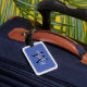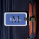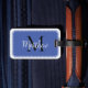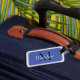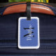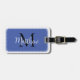 Etiquetas de equipaje personalizado en azul. Edite la inicial y el nombre para hacerlo personalizado. Idea de regalo.