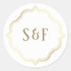 Elegantes pegatinas en monograma con color de fuente dorado y fondo blanco.