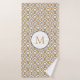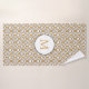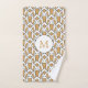 Juego de toallas con motivos florales en forma de deco de arte blanco y negro. El diseño presenta un motivo art deco sunrise en oro, blanco y negro y un círculo blanco con su personalizado inicial.