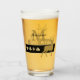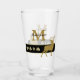 ¡Este vaso de cerveza de barril es distintivo y memorable! Presenta un ciervo dorado con silueta sobre un fondo negro dramático. Al lado del ciervo hay símbolos de traje de tarjeta dorada en el mismo rectángulo negro. Su monograma está en oro coincidente y su nombre está escrito en escritura negra sobre él. Ambos lados del vidrio tienen el mismo texto e imagen. ¡Perfecto para sus noches de póker!
