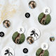 Este foto-confetti es perfecto para un bar de caramelos Bat Mitzvah, mesa de postres, mesa de velas y más. El diseño cuenta con una palmera blanca y negra, una carta monográfica, una Estrella de David y tres fotos de tu chica Bat Mitzvah. Introduzca la herramienta de diseño de Zazzle para ajustar la posición de la foto.