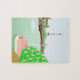 Monograma París Torre Eifel Puzzle with Gift Box with Paris city scape - Torre Eiffel, río Sena con botes, castaño floreciente y puente Alexander (puente Alejandro III), uno de los lugares más bellos de París. Barco rosa y blanco con un nombre personalizado. Colores pasteles: agua, azul, marrón, verde, rosa. Un regalo encantador y romántico personalizado.
