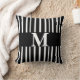 Esta almohada de acento personalizado monograma presenta audaces rayas negras y blancas de estilo moderno de moda para la decoración casera.