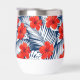 Estupendo café/vaso de vino con un patrón de Hibiscus floral tropical rojo, blanco y azul. Añade un monograma, nombre o texto personalizado para personalizar este tipo de regalo. Perfecto para bodas tropicales, Día de la Madre, vacaciones tropicales en la playa, regalos de cumpleaños y más.