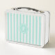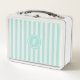 La perfecta caja de almuerzo / juguete / caja de memoria para niños monograma personalizado... cabaña de playa francesa de color verde menta con tira de guion monograma. Personaliza con tu propia inicial. Accesorios de juego disponibles en nuestra colección de cabinas de playa francesa.