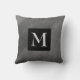 Esta almohada de tiro monograma personalizado tiene un fondo abstracto en tonos grises de carbón vegetal con texto para decoración y accesorios de casa.