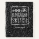 Un divertido purpurina blanco y negro personalizado de 8.5 x 11. Las palabras "doodle, draw, sketch" en un tipo de letra dibujado a mano personalizado con su nombre debajo y su nombre en la parte posterior. Personalizar el cuaderno de bocetos con el nombre de tu elección para hacer que alguien se sienta especial. Hace un regalo divertido para cumpleaños o Navidades. Viene en una variedad de colores. Diseñado para ti por Blackberry Boulevard.