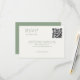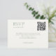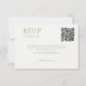 Esta tarjeta de respuesta RSVP de moda incluye un código QR del sitio web boda y un monograma de pareja encantadora en una combinación de colores verdes. Un conjunto contemporáneo de fuentes también en verde sabio, con fondo marfil, establece un tono elegante y de moda
