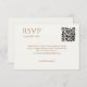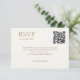 Esta tarjeta de respuesta RSVP de moda incluye un código QR del sitio web boda y un monograma de pareja encantadora en una combinación de taupe y beige. Un conjunto contemporáneo de fuentes también en taupe, contra un fondo de marfil, establece un tono elegante y de moda.