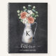 Este rústico libro de recetas negro combina el encanto vintage con la belleza botánica floral, con rosas, eucaliptos y una jarra de monograma. ¡Un accesorio de cocina de casa de campo adecuado para la recolección de recetas familiares!
