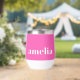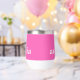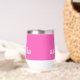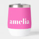 Tumbler térmico lindo que incluye tu nombre o iniciales monogramadas en un tipo de letra blanco negrita sobre un fondo rosa brillante. Puede cambiar el color de fondo y ajustar el tamaño del tipo de letra en la herramienta de diseño para nombres más cortos o más largos.