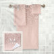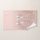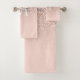 Hermoso rosa dorado con brillo, nombre en letra cursiva elegante y monograma en juego de toallas de fondo rosa claro. Diseñado por Thisisnotme©