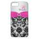 Monograma rosa, negro, plata Damask iPhone 7 Funda