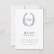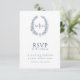 Monograma RSVP con hoja dibujada a mano blanca azu